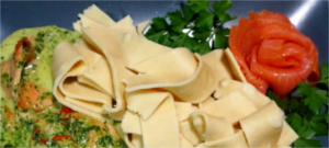 Selbsgemachte Bandnudeln aus Linsenmehl mit Lachs