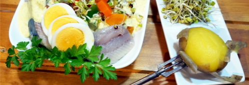 Zarte Matjes mit Pellkartoffel und einer grünen Soße mit frischen Kräutern